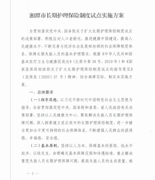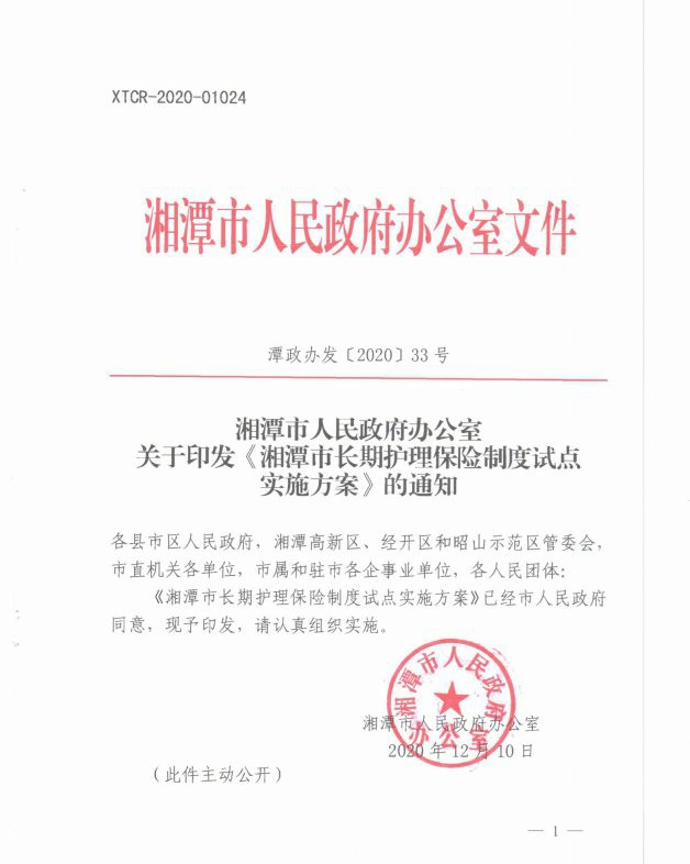 潭政辦發(fā)〔2020〕33號(hào)湘潭市人民政府辦公室關(guān)于印發(fā)《湘潭市長期護(hù)理保險(xiǎn)制度試點(diǎn)實(shí)施方案》的通知